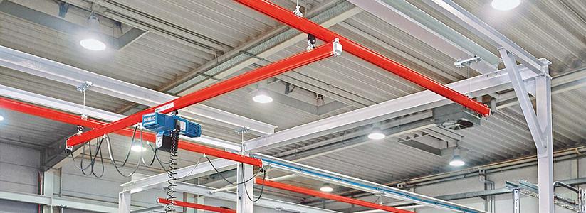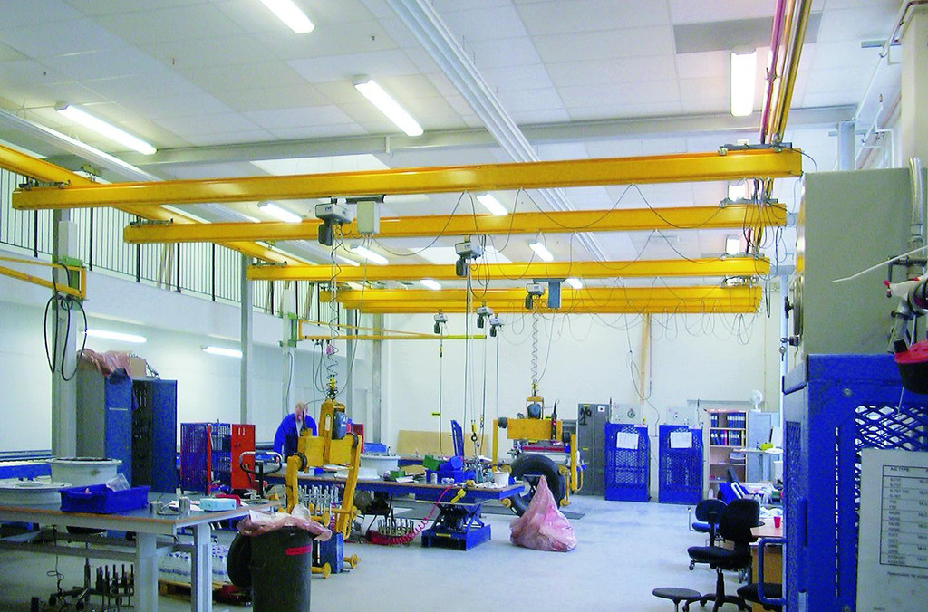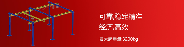 高强度轨道及可拓展桁架结构设计,使之整体不需要额外增加工字钢悬挂,从而减少整体自重,起重能力可达2000kg,经济环保,特别是桁架结构的优化可使间隔达9米,大幅减少立柱或支持件数量,减少空间干涉,使厂房布局美观简洁。